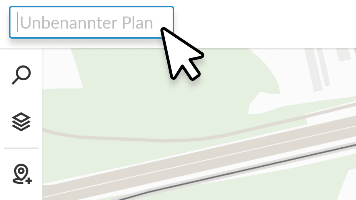 Wenn Sie bereits Zeichnungen in Ihrem Plan abgesetzt haben, wird links in der Kopfzeile der Text Unbenannter Plan angezeigt. Sie können einfach mit der Maus auf dieses Feld klicken und den gewünschten Namen eingeben. Der Name wird automatisch gespeichert, sobald Sie das Eingabefeld verlassen.